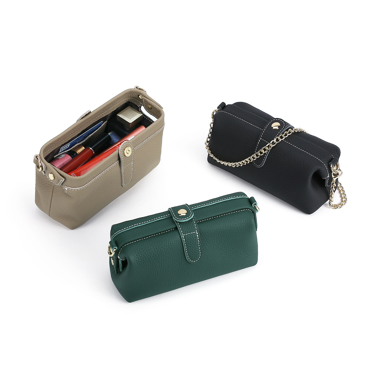 New Leather Women's Shoulder Crossbody Bag Multifunctional Wash Bag Leather Mouth Gold Women's Bag Convenient Outgoing Cosmetic Bag