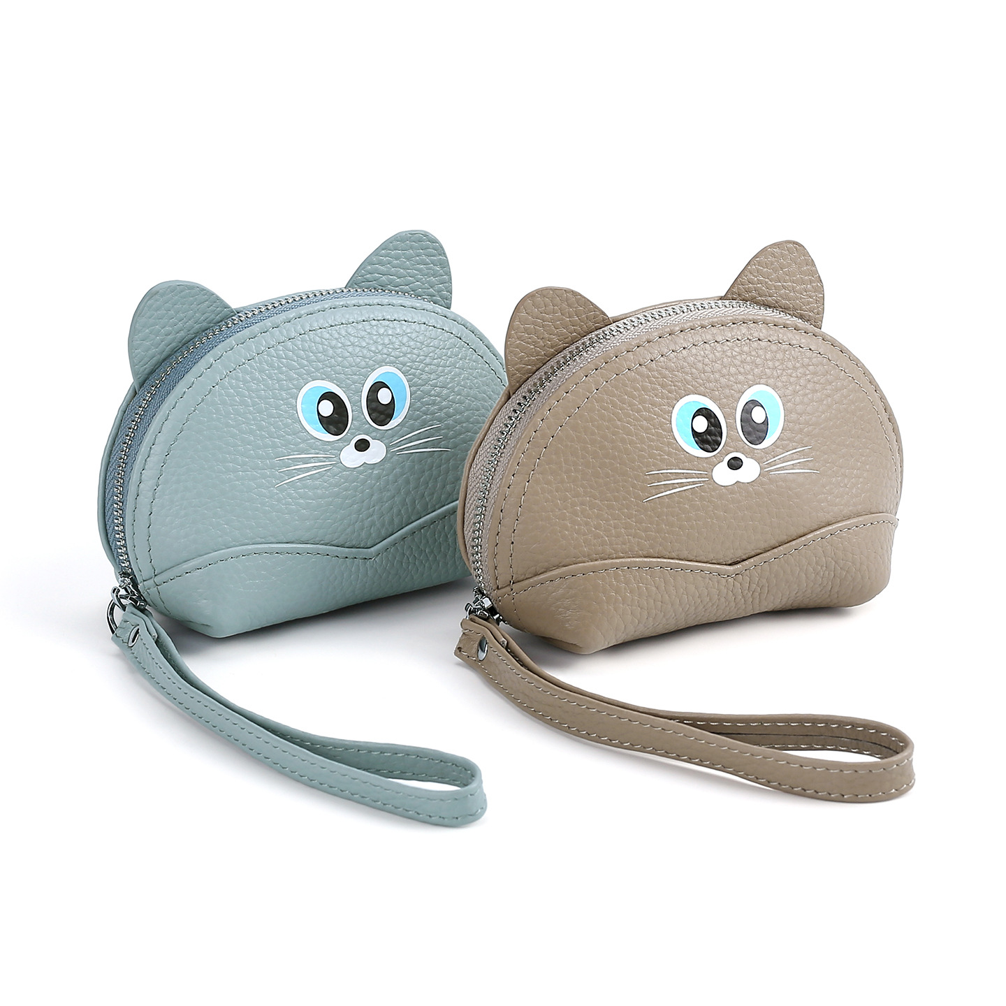 Creative New First Layer Leather Ladies Wallet Multifunctional Change Key Bag Cat Head Hand Bag Live Supply