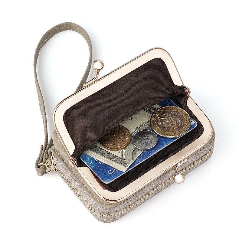 Japanese-style Gold Leather Ladies Wallet Rfid Multifunctional Wallet Out Of The Street Hand Carrying Hinged Bag 2-in -1 Change Wallet Bag