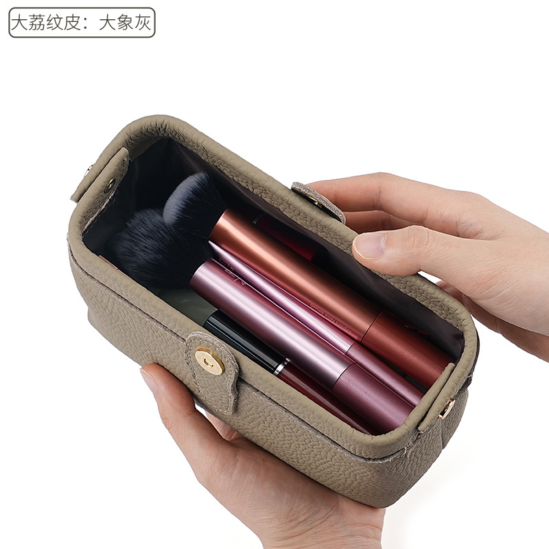 High-grade Genuine Leather Wash Bag Multifunctional Cosmetic Box Mouth Gold Cosmetic Bag Travel Wash Cosmetic Storage Box
