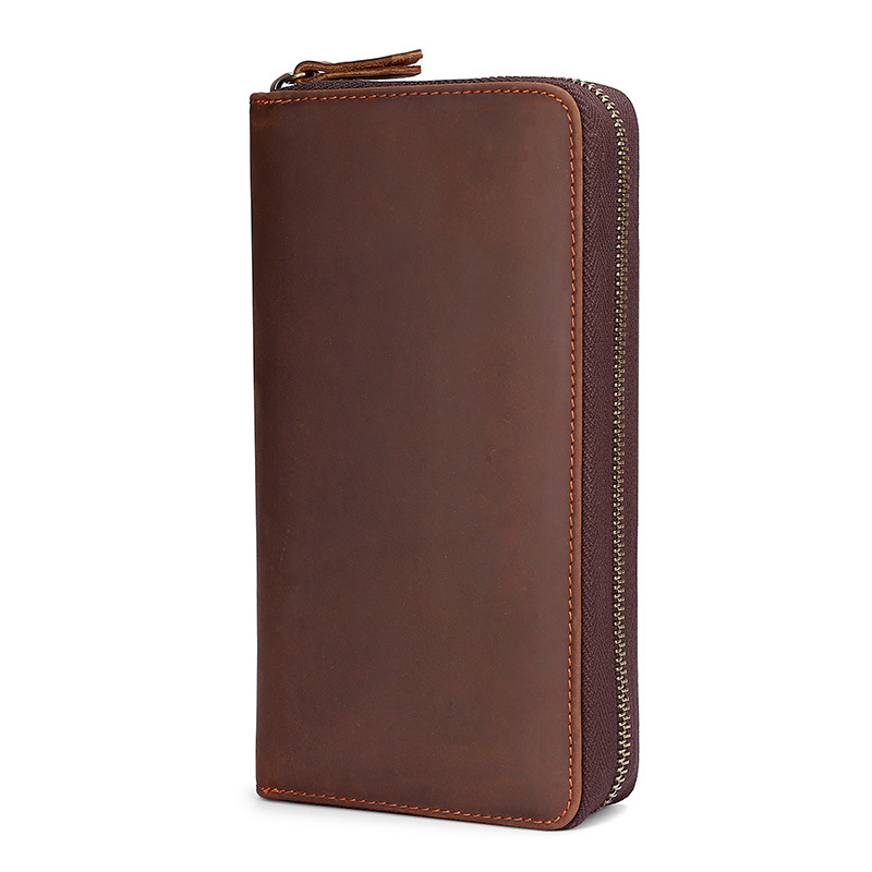 Imported Crazy Horse Leather Men's Clutch Bag Long Leather Wallet Retro Cowhide High-end Handbag Zipper Mobile Phone Bag