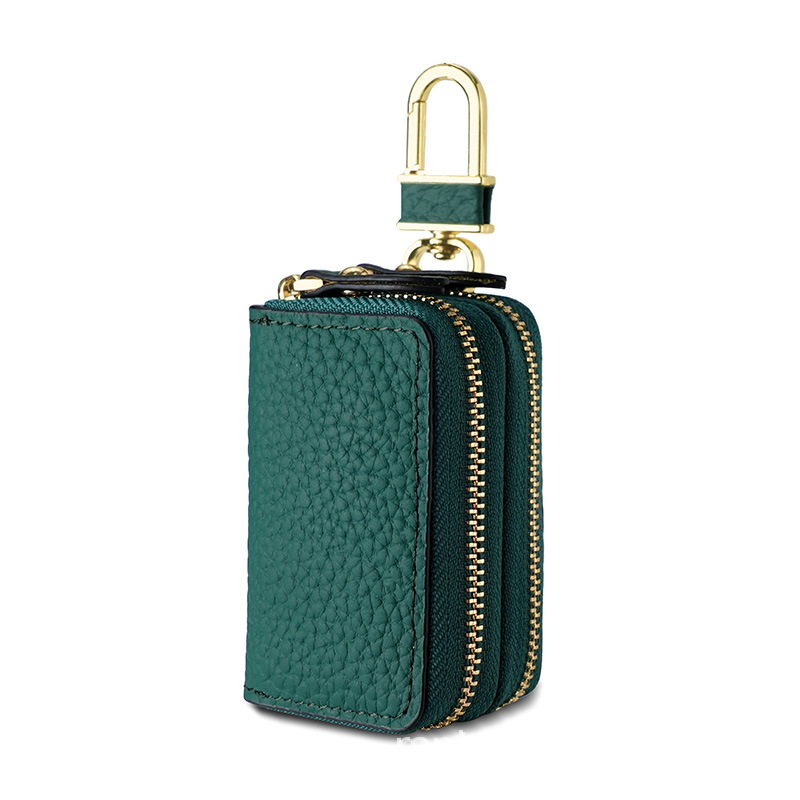 New Double Zipper Car Key Leather Cover Leather Car Key Bag Men's And Women's Leather Hook Key Bag