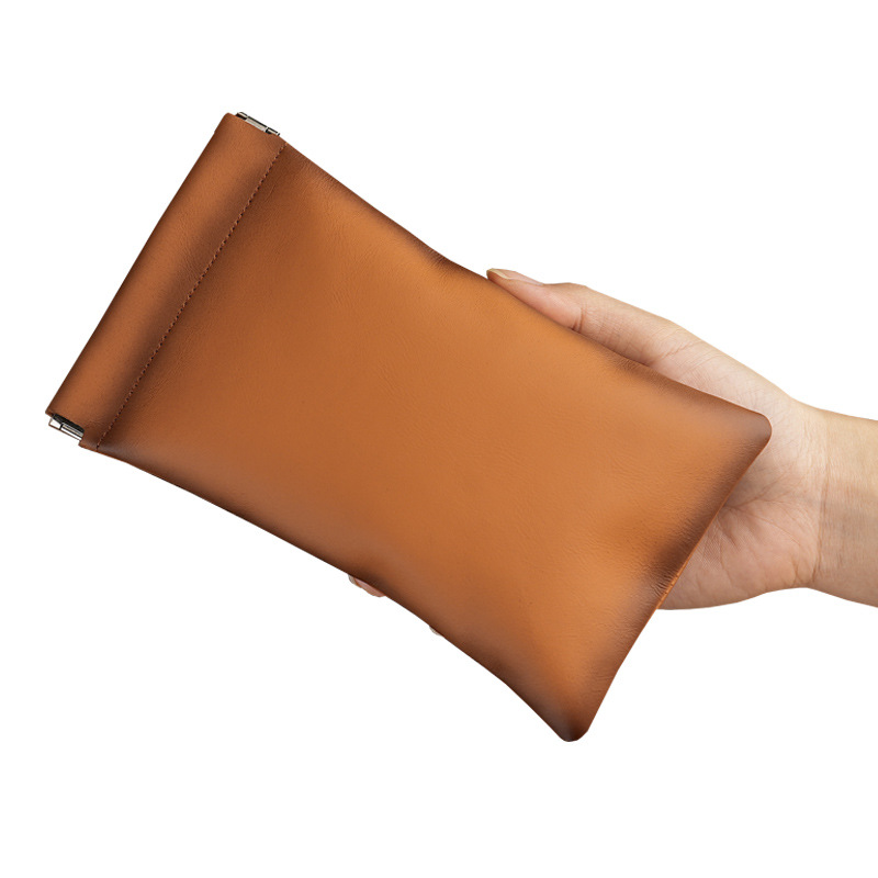 First Layer Cowhide Glasses Bag Automatic Closure Shrapnel Leather Sunglasses Sunglasses Reading Glasses Storage Bag Cowhide Case