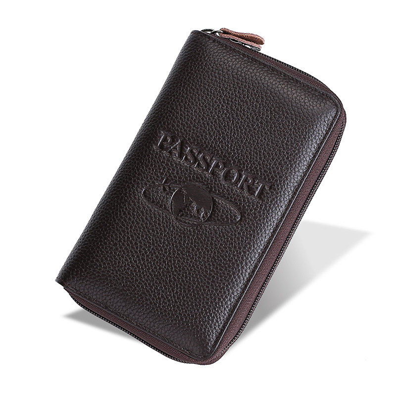 2019 New Genuine Leather Boarding Bag Long Multi-functional Mobile Phone Pocket Litchi Pattern Zipper Airline Ticket Clutch