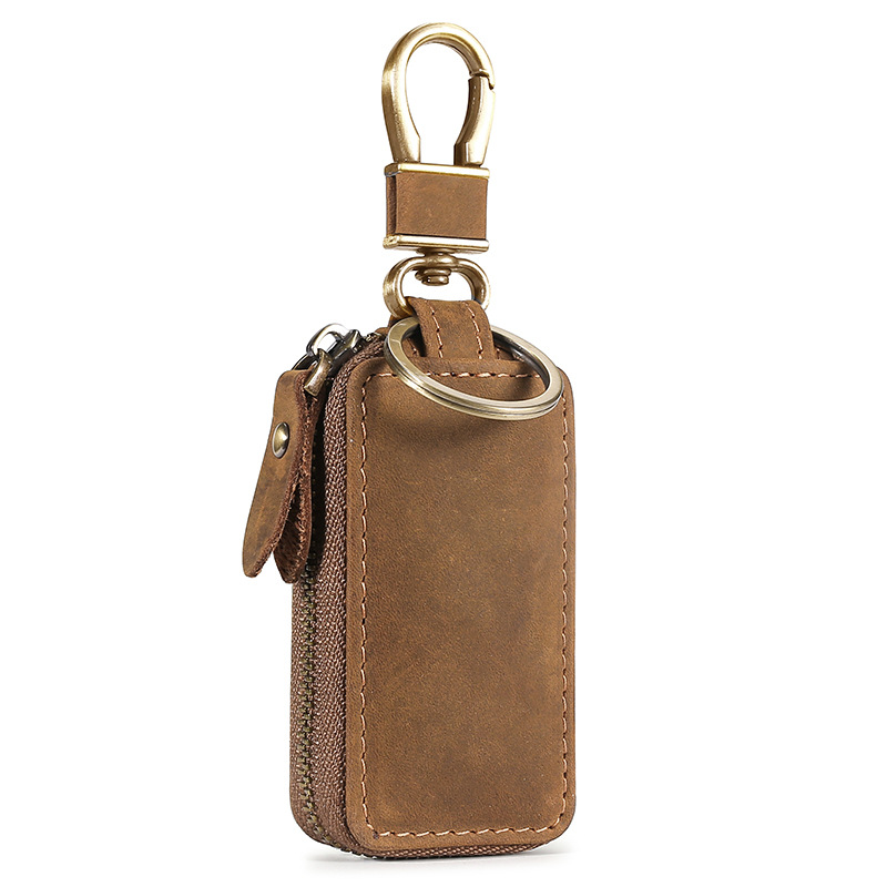 Multi-functional Single Zipper Car Key Case Head Layer Cowhide Key Leather Case Retro Universal Waist Hanging Car Key Case